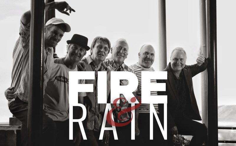 ‘Fire and Rain’ are all highly regarded musicians in their own right and include Tom Townsend (Lead Guitar and vocals), Rich Adams (Acoustic Guitar, vocals and triangle!) Mark Gordon (Keyboards), Rowan Oliver (percussion) with Paul Tilley (Drums) and Bob Walker (bass).